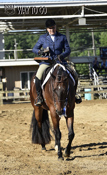 In the Three Year Old Novice Horse Novice Rider Hunter Under Saddle, Corrine English showed Hez Kinda Trouble to the win, and donated her $1,232 back to the NSBA Crisis Fund, starting off the day’s fundraiser for the fund.